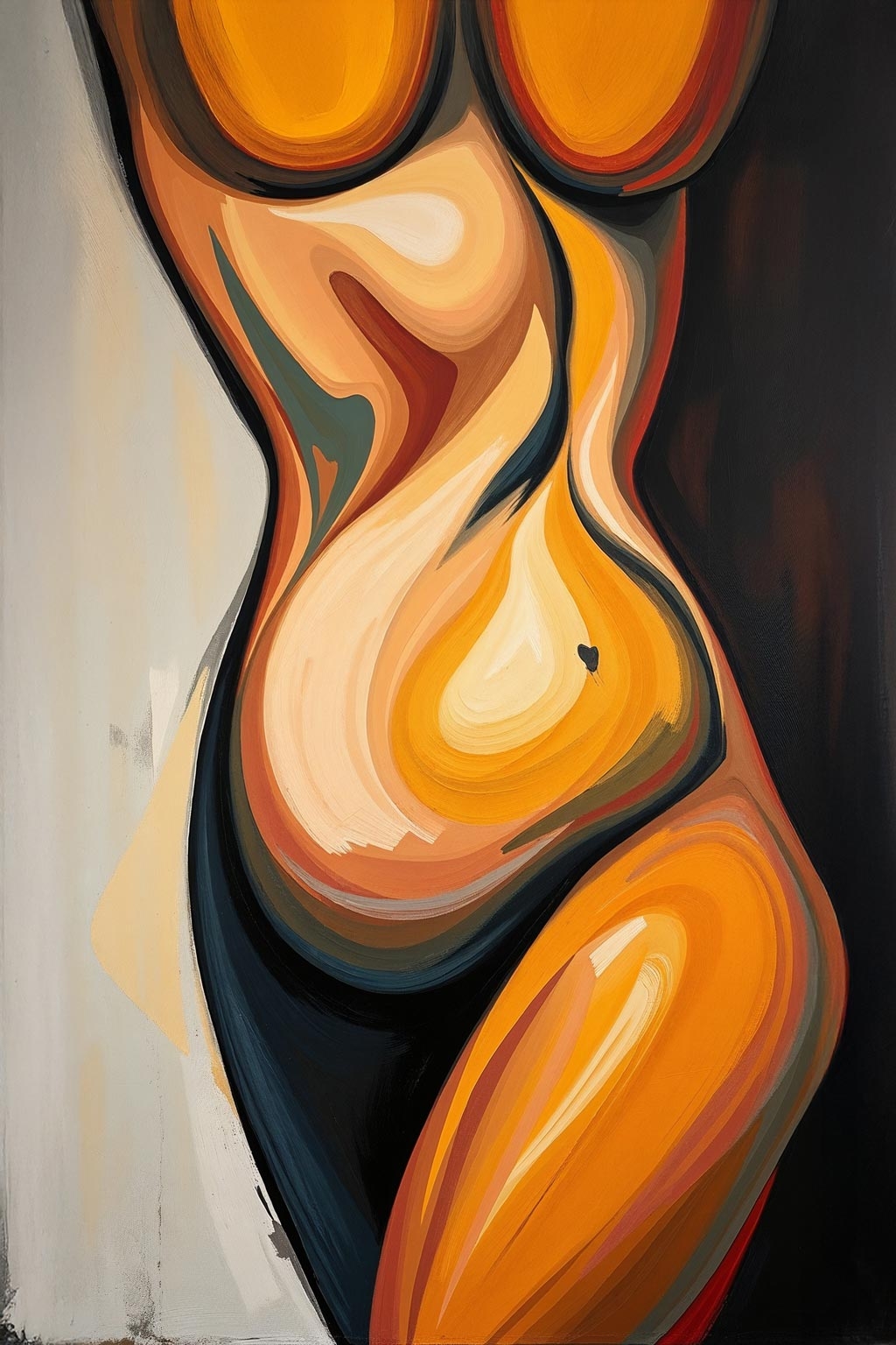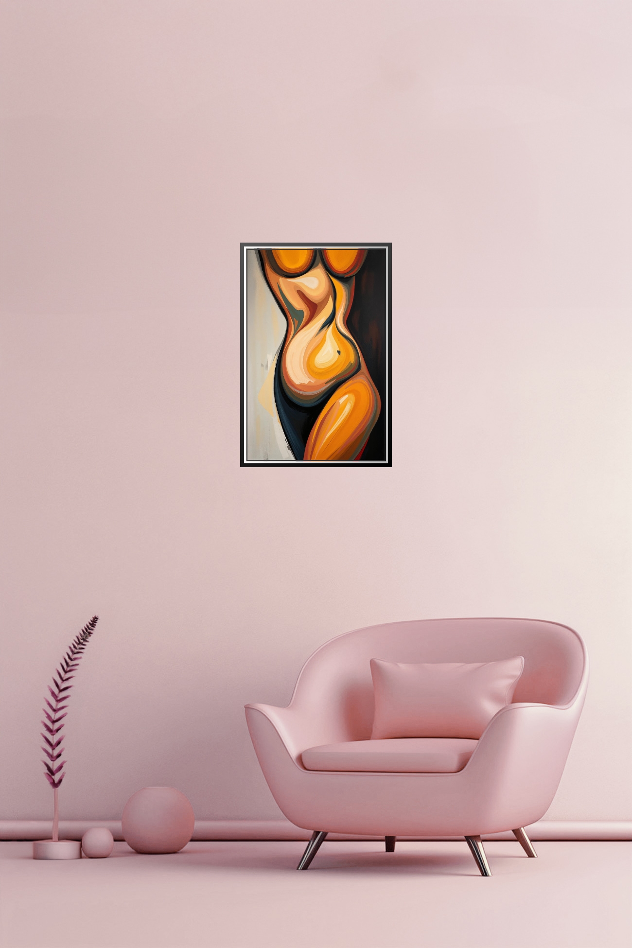 A dynamic **Abstract Expressionist** art print capturing a woman passionately playing an upright piano. The painting style uses vibrant, energetic brushstrokes and splatters of fiery oranges, reds, and greens, suggesting the emotional intensity and movement of the music. The figure seems to dissolve into the abstract colors, making this a powerful representation of the connection between art and sound. Perfect for musicians, art lovers, and those seeking a dramatic and colorful statement piece for a living room or music studio.