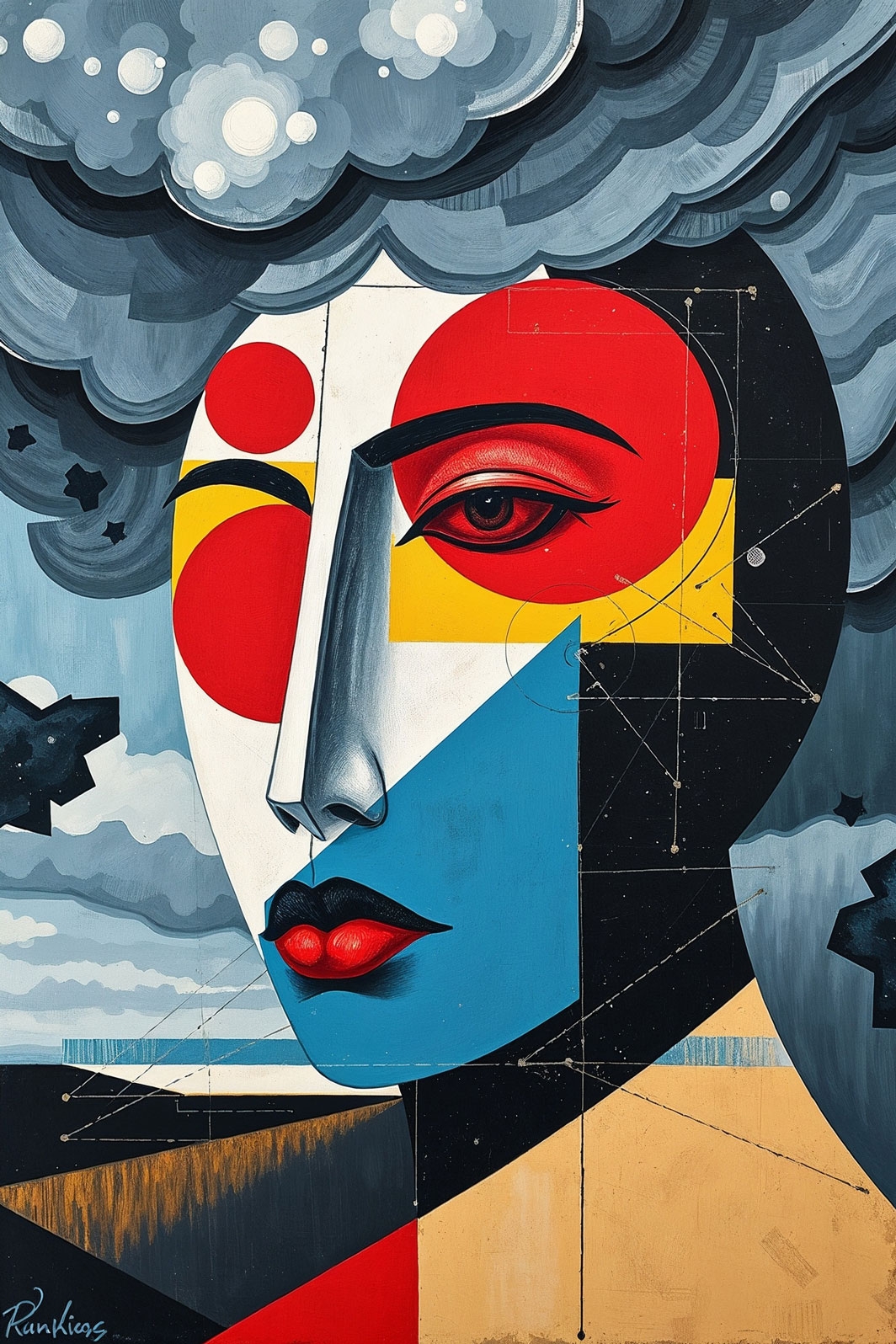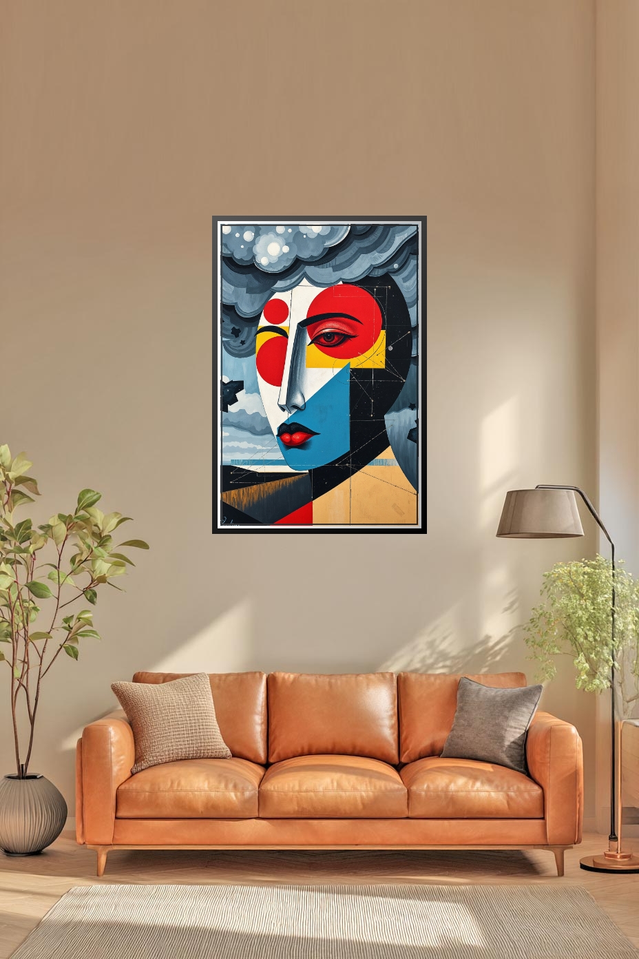 This surreal Bauhaus-inspired portrait makes a captivating gift for art lovers, creatives, and fans of imaginative modern design. Dramatic clouds, bold shapes, and expressive colors create a dreamlike mood that enriches living rooms, studios, or office spaces. Printed on premium archival paper for crisp detail and rich tonal depth, ready to frame or gift. A powerful statement piece that also shines within a curated contemporary gallery wall.