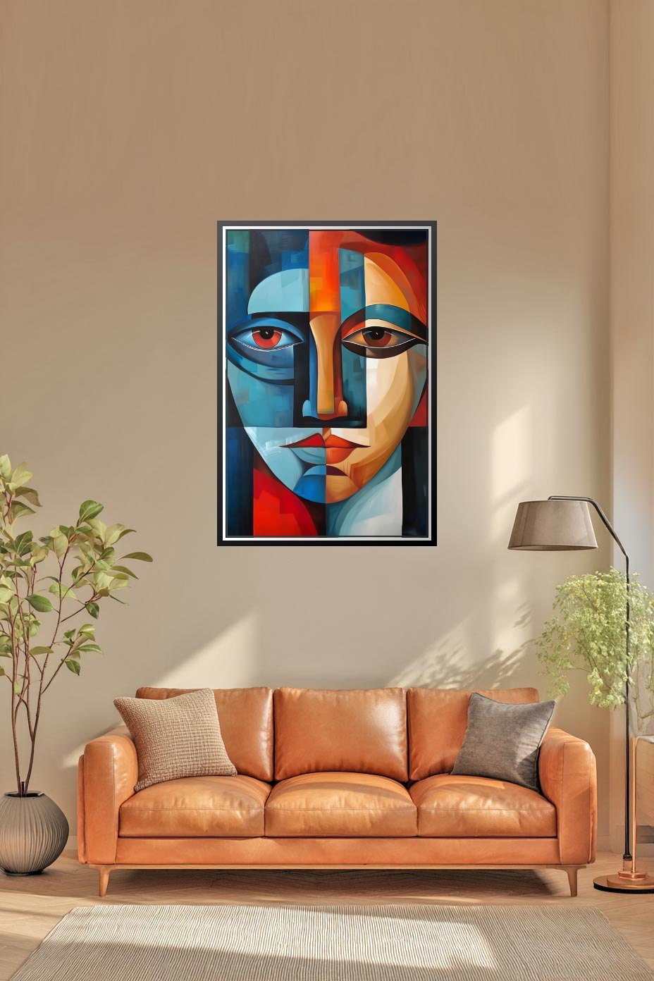 An unforgettable art gift for fans of modern abstract and cubist design. This striking composition blends geometric shapes and vivid color blocks in red, blue, and gold, forming a mesmerizing human face. Perfect for contemporary spaces such as living rooms, offices, or art studios that embrace creativity and bold energy. Printed on premium matte paper for crisp detail and smooth finish, ready to gift or frame. A conversation-starting masterpiece that adds personality and depth to any wall.