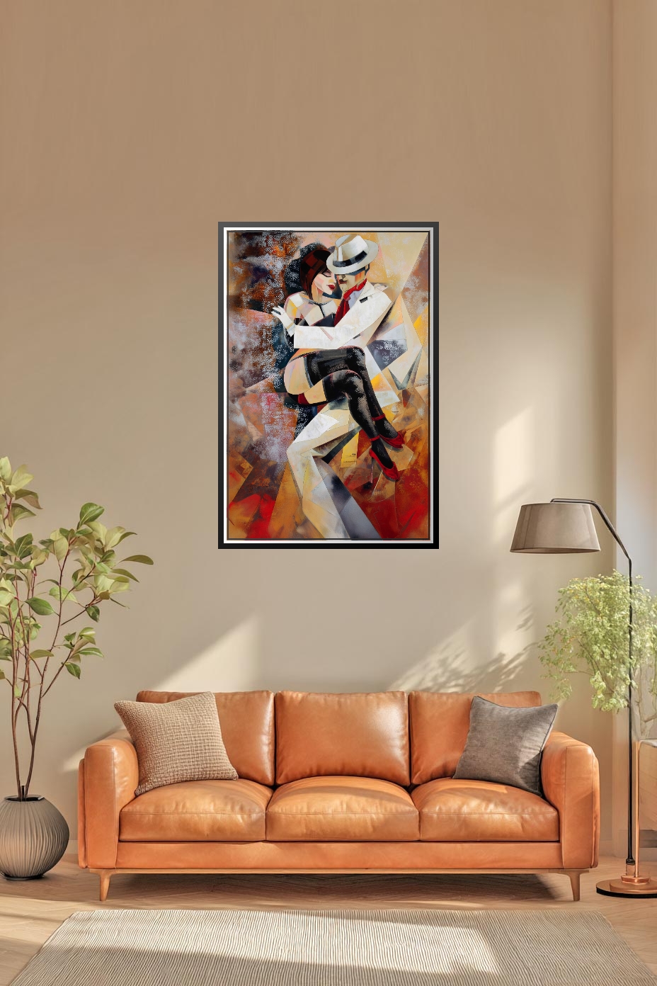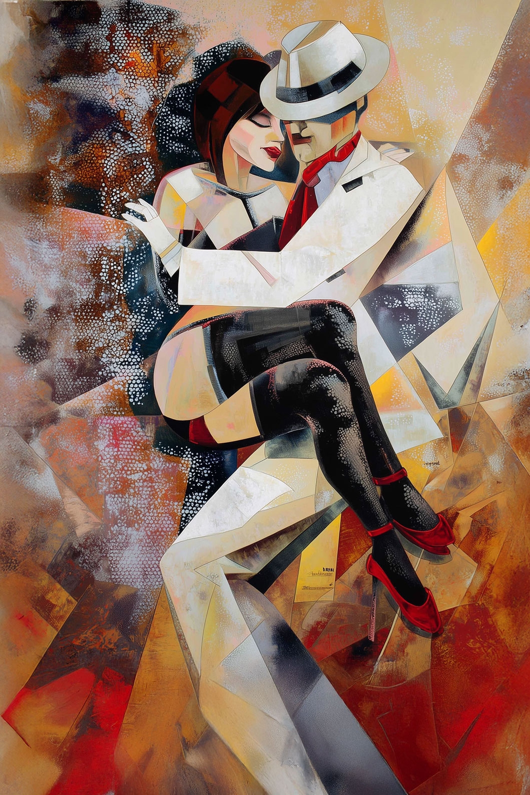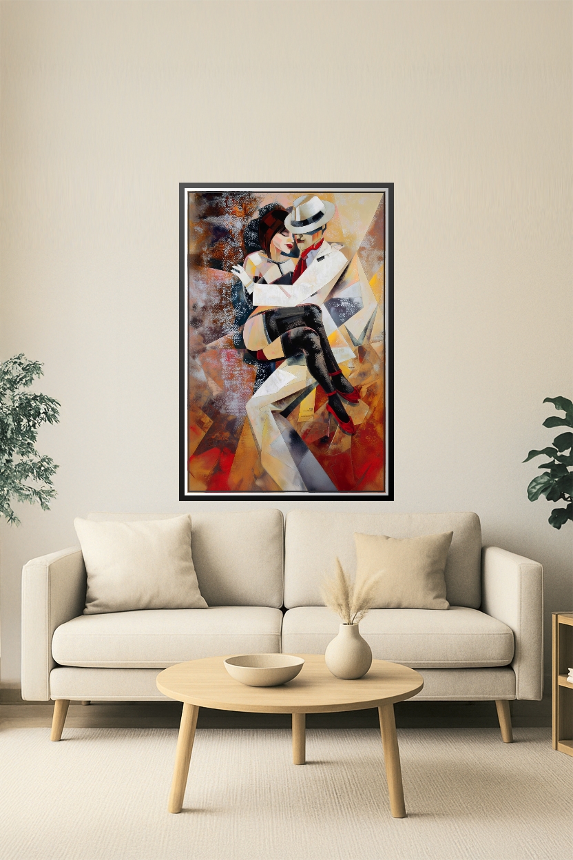A dramatic cubist-style dance embrace filled with movement, passion, and expressive geometry—perfect for art lovers, dancers, and anyone who enjoys romantic modern décor. Warm golds, deep reds, and textured patterns create an intimate, high-energy mood ideal for living rooms, bedrooms, or creative studios. Printed on premium matte paper for crisp detail and rich painterly depth, ready to gift or frame. Makes a striking standalone centerpiece or a powerful addition to a gallery wall.