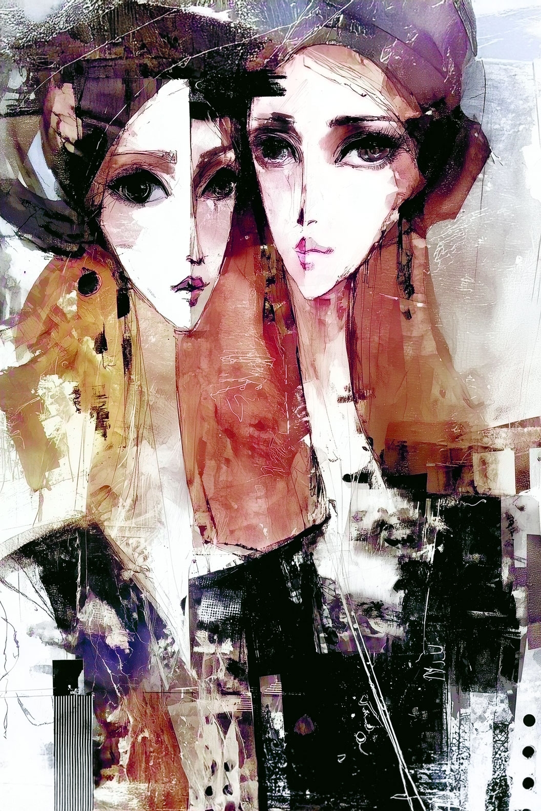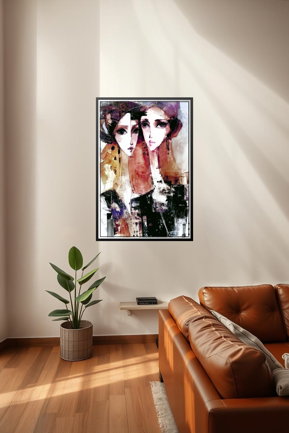 Expressionist Sisters Poster – Ethereal Dual Portrait | Great Gift
