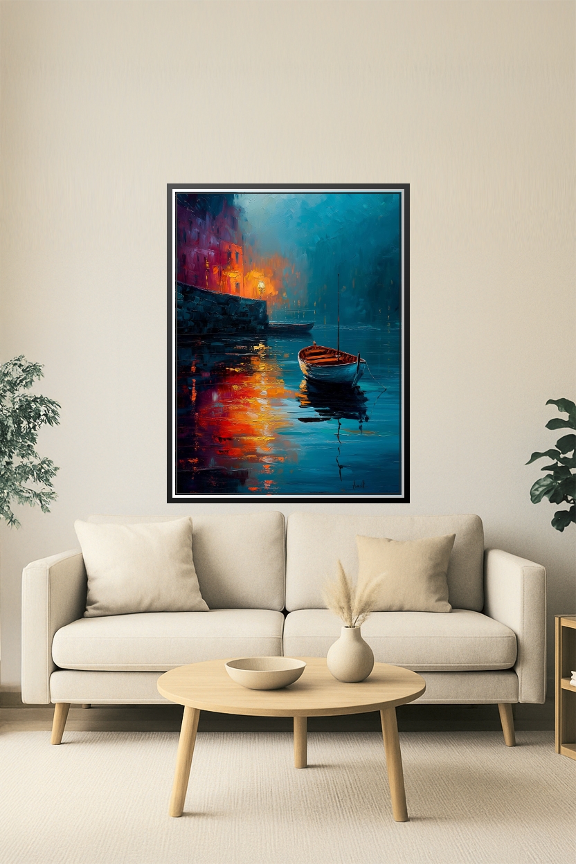 A perfect gift for ocean dreamers and art admirers, this impressionist harbor scene captures peaceful solitude with glowing reflections on tranquil waters. Ideal for a living room, study, or bedroom, its rich blue and amber palette brings warmth and calm to any space. Printed on premium archival paper with deep, lasting color fidelity. Complements modern or coastal-themed decor beautifully.