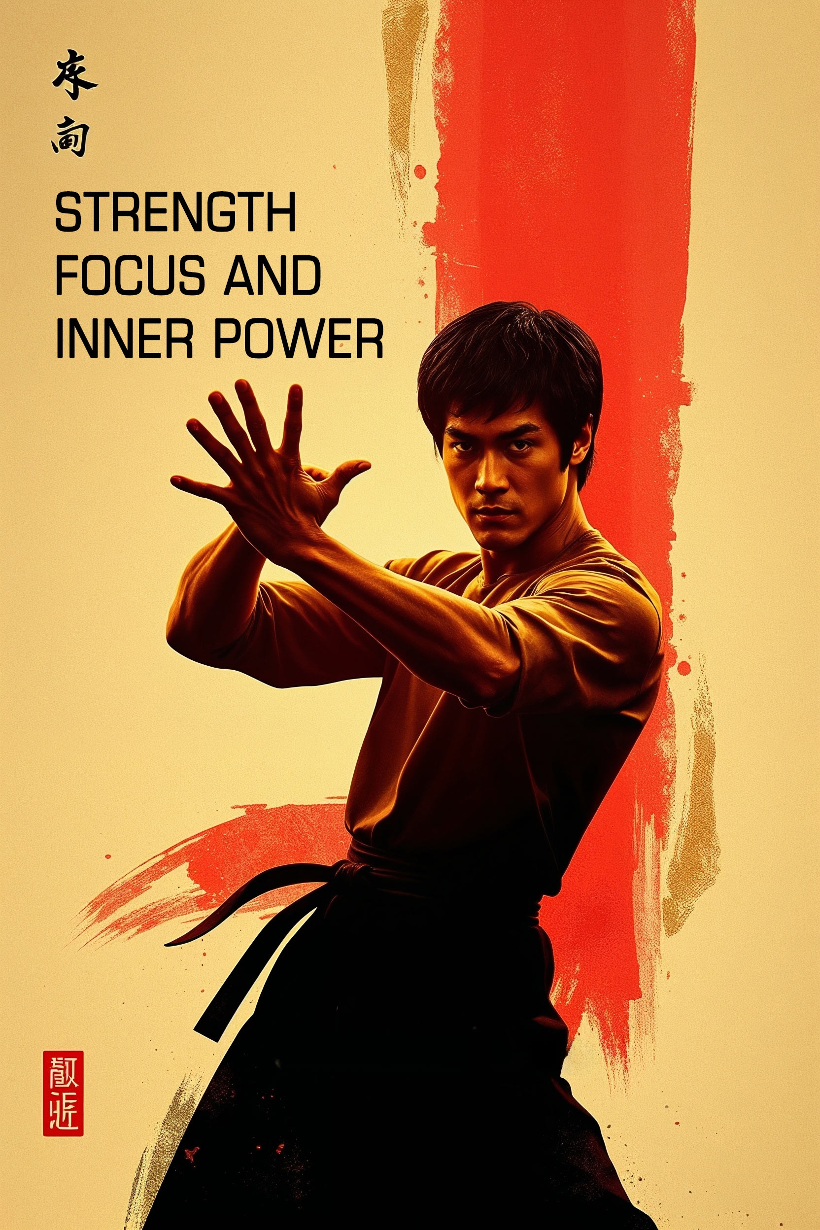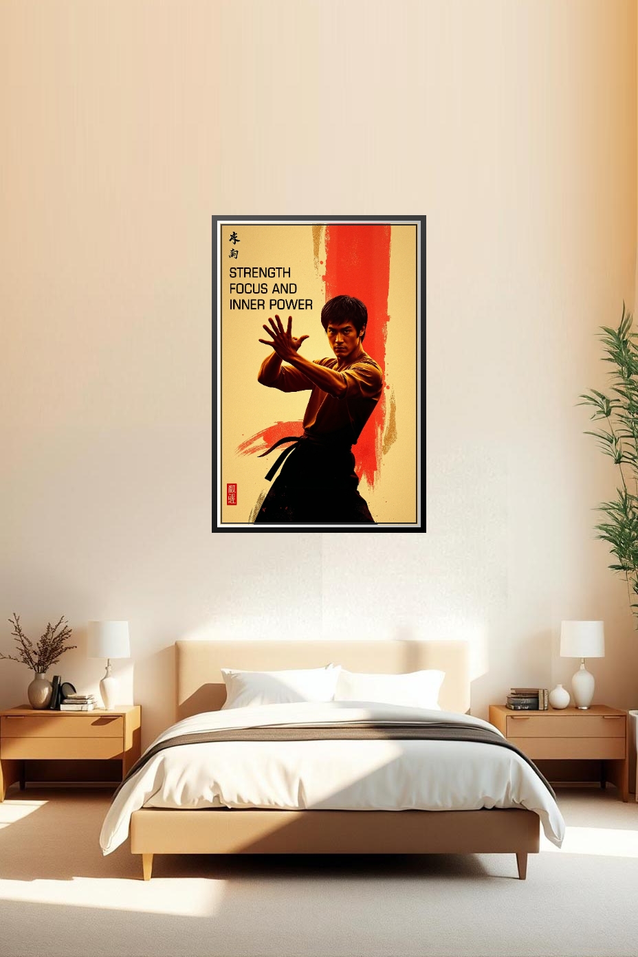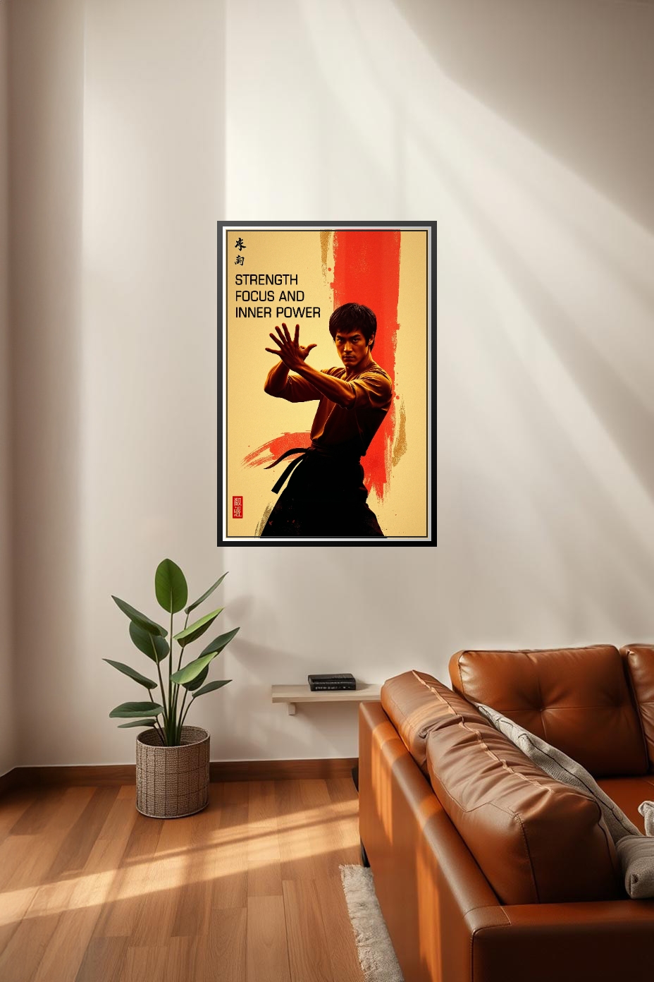 A powerful martial arts poster symbolizing discipline, energy, and self-mastery. Bold red and gold tones reflect courage and focus, creating a striking visual statement for gyms, studios, or personal spaces. Printed on premium-quality paper with exceptional color depth, ready to frame or gift. Perfect for motivating athletes, martial artists, and admirers of eastern philosophy.