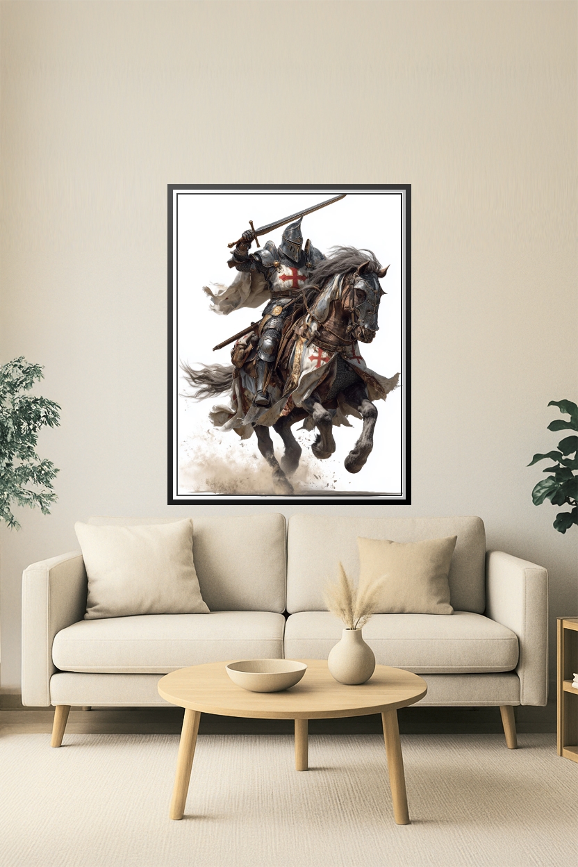 Bring history and valor to your walls with this stunning medieval crusader knight artwork. Featuring a fully armored knight charging into battle on horseback, this poster captures the raw power, courage, and spirit of medieval warfare. Perfect for history enthusiasts, fantasy art lovers, or anyone seeking a bold centerpiece for their decor, this high-definition print blends realism with legendary medieval artistry.