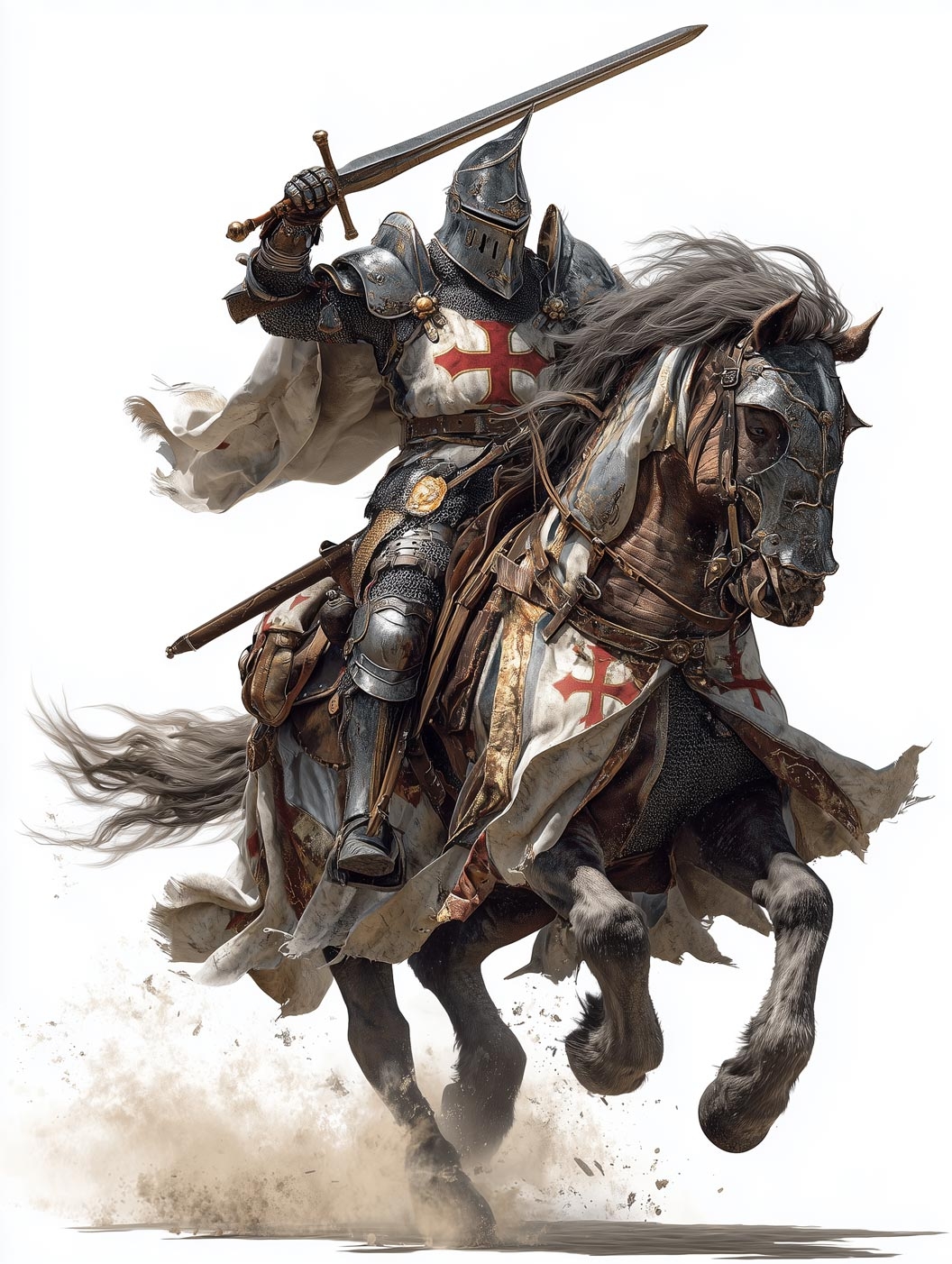Medieval Crusader Knight on Horseback – Epic Fantasy Art Poster