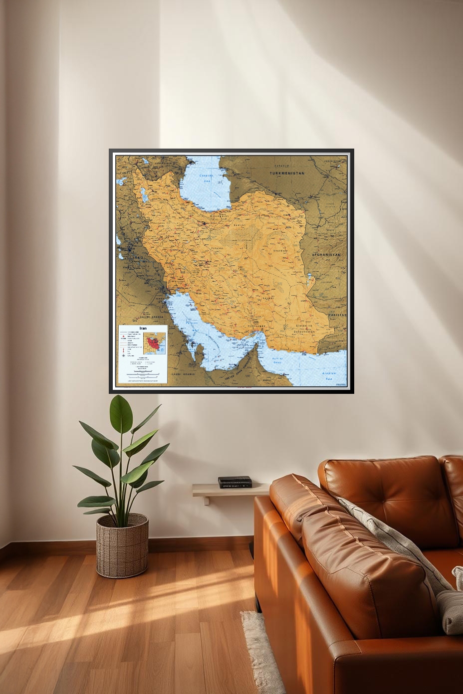 Political Map of Iran – Detailed Geographic Wall Art Print