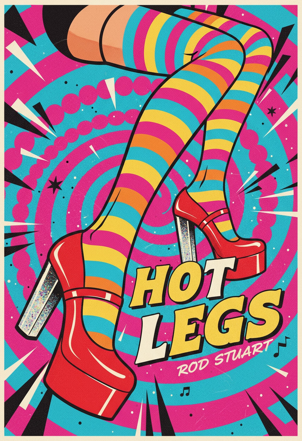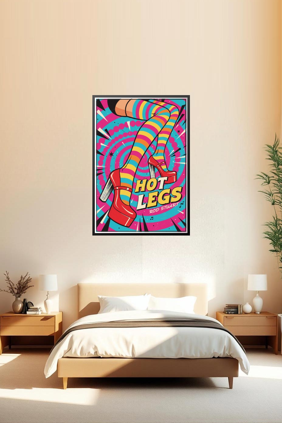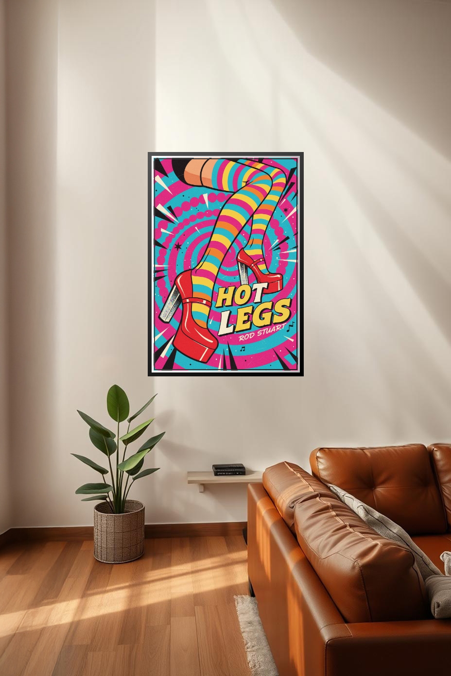 This vibrant Pop Art poster inspired by Rod Stewart’s ‘Hot Legs’ bursts with retro rhythm and bold color energy. Electric tones of pink, turquoise, yellow, and red bring a playful, flirty 70s vibe perfect for music lovers and vintage art fans. Printed on premium paper with crisp detail and dynamic finish, ready to frame or gift. Adds instant pop and fun to any modern or retro decor.