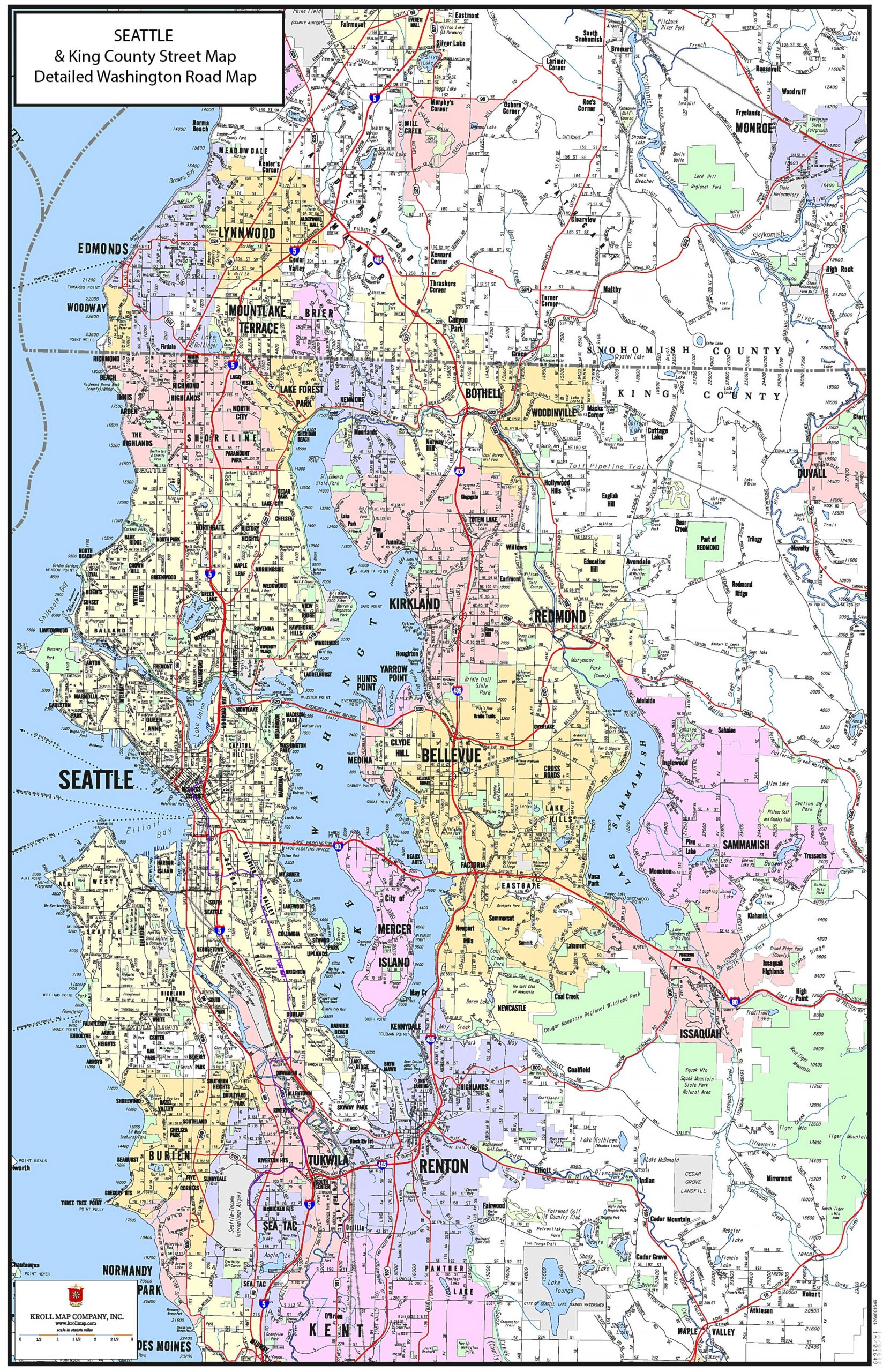 Seattle & King County Street Map Poster – Detailed Washington Road Map