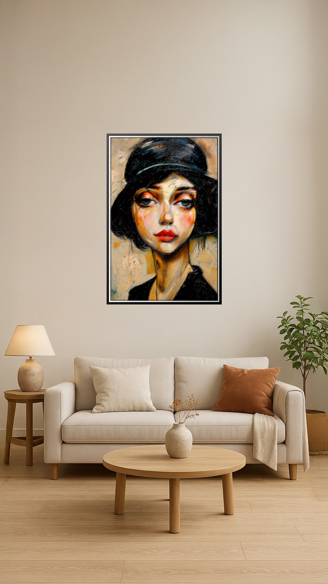 Textural Expressionist Portrait Print – Woman in Cloche Hat | Gift Poster